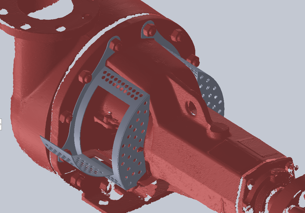 The Company requested some guards to be made for their charge pumps. As these machines spin upwards of 2900 RPM and accident was immenent. These pumps were 3D scanned onsite. The design included breather holes situated throughout the guard to disperse heat and a service door with locking tabs for ease of access.